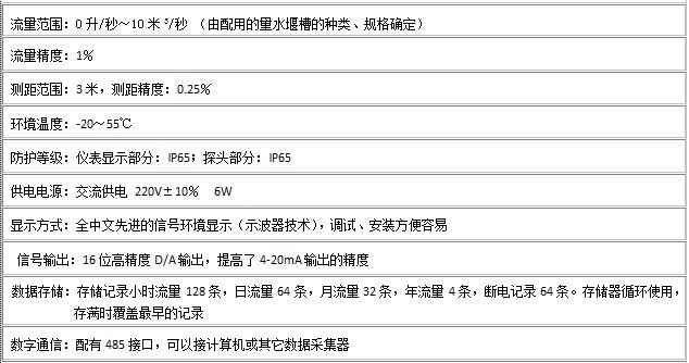 YSD300超聲波明渠流量計,采用全新的集成電路設計,測量、校準更加準確。儀表內置EEPROM,確保停電時儀器內累計流量不會丟失,適合惡劣環境的應用。并增加了歷史記錄查詢等智能功能,會使您在儀表的使用上方便,準確。制作工藝簡單、測量準確直角三角堰水位流量測量方式、矩形堰水位流量測量方式完全可以替代原有的巴歇爾量水堰的傳統測量方式。